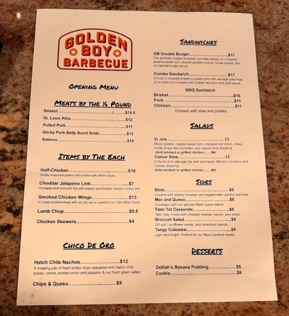 At Golden Boy Barbecue, located at 551 S York St, Elmhurst, IL, the art of barbecue is perfected with a unique and vibrant atmosphere. This culinary gem boasts an impressive menu centered on traditional barbecue techniques, featuring an actual offset smoker that uses real wood for authentic flavors.